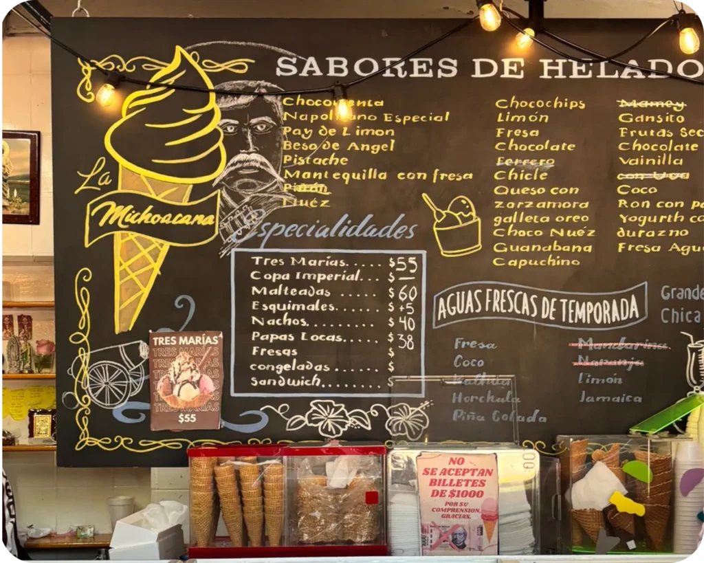 En La Michoacana creemos que nuestros clientes son parte de la familia. Cada visita, cada sonrisa y cada antojo compartido nos inspiran a seguir ofreciendo productos de calidad, hechos con cariño y dedicación. Nos esforzamos por crear experiencias que van más allá del sabor: momentos auténticos, llenos de frescura y tradición mexicana. Más que una heladería, somos un punto de encuentro donde la comunidad se reúne a disfrutar lo que más nos une: el gusto por lo bueno y lo hecho con corazón.